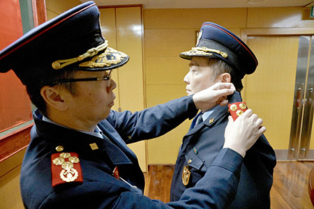 【特訊】消防局於二零一九年一月十五日,在消防局總部舉行副局長就職儀式,儀式中向一名消防總長頒授副消防總監軍銜。