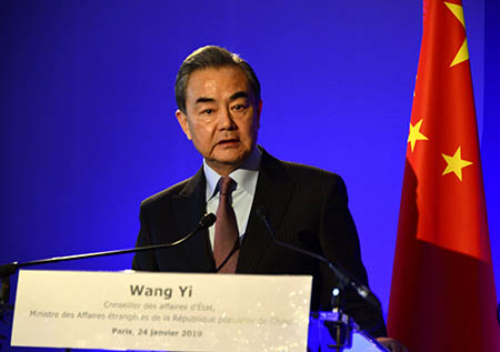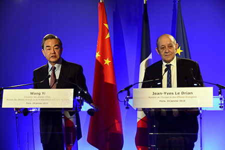 王毅表示,55年前,冷戰正酣的時候,毛澤東主席和戴高樂將軍毅然作出中法建交的歷史性決定,法國成為第一個同新中國正式建交的西方大國。55年來,不管國際風雲如何變幻,中法關係一直走在中歐和中西方關係的前列。雙方建立在互利共贏基礎上的合作,為兩國和兩國人民帶來了實實在在福祉。兩國關係的戰略性和開創性,為世界和平、穩定和發展作出了獨特而重要的貢獻。