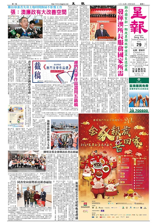 【特訊】為推動澳門文學發展,澳門基金會與文化局今年繼續攜手合作,出版《2018年度澳門文學作品選》,由1月2日開始公開徵集2018年間發表的澳門小說、散文、新詩與舊體詩詞,本周五(2月1日)最後收件。