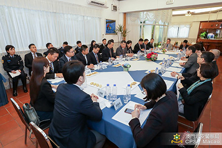 治安警察局向眾嘉賓介紹交通廳日常運作、交通警務裝備、調查交通意外方面的工作介紹,以及交通廳的道路監控系統對於監察路面情況、處理突發或嚴重的交通事故,在搜證工作方面起到重要的作用等。及後,雙方進行工作會議,就案件的通報及接收、嫌犯移交、扣押物處理、在旅客行李發現禁用武器等案件,在程序上的優化及人員培訓等多方面交換意見,為日後順利推進及落實各項工作奠定了良好基礎。