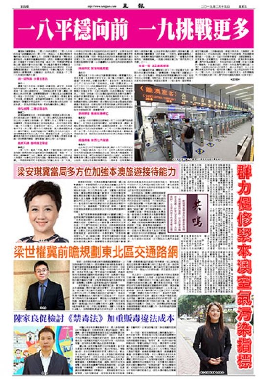 農曆新年期間,來澳旅客數量再攀高峰,據公佈數據顯示,新春假期首六日訪澳旅客總量比去年同期上升百分之廿七點四,創歷年新高。一些旅遊區域如新馬路、大三巴等出現人潮,並實施人潮管制措施,隨著訪澳旅客數量不斷增多,坊間有聲音質疑本澳旅遊承載力是否達到極限,不僅有遊客認為景點人流太擁擠,影響旅遊體驗,更有市民認為影響他們的正常出行和生活質素。立法議員梁安琪表示,當局應努力檢討本澳當前在旅遊服務各環節中存在的不足,通過推動“智慧旅遊”發展,不斷提升旅遊服務質素及改善旅客及市民對本澳旅遊業的印象。