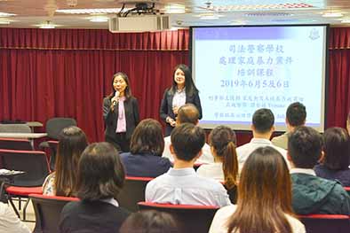 是次培訓活動於六月五日至六日在司法警察學校進行,主要內容包括香港有關家庭暴力及保護兒童的法例及政策、當局處理懷疑家暴個案的調查架構、家暴案件性質及對家庭的心理影響、家暴風險因素評估,涉及兒童和精神上無行為能力人士的家暴案件的調查程序、證人能力及限制、與受害人的溝通技巧及其在法庭作供的保護措施、涉及性罪行的調查程序、涉及少數族裔的權益保障問題等;活動中亦有專題講解調查人員的心理健康問題,以及如何進行自我調適等。