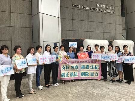 【香港中通社7月23日電】(記者 張瑞絲)香港港區婦聯代表聯誼會成員23日來到警察總部,強烈譴責激進示威者21日衝擊中聯辦以及隨後發生在元朗的暴力事件,並呼籲示威者停止一切暴力行為,支持警察嚴正執法、鏟除暴力、維護法紀。