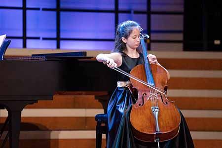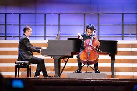 韓博文和伊露娜同學在廣東賽區比賽中(廣州星海音樂學院附中舉行)先拔頭籌,分別贏得了大提琴省級少年B組及少年C組第一名,順利晉級總決賽。兩位同學在北京的總決賽中憑藉高超的演奏技藝,力壓群雄,得到評審團一致肯定,再次分別獲全國級少年B組,少年C組第一名。