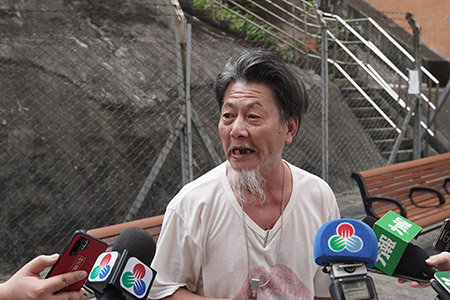 涉嫌先後2次破壞青洲山山體被捕的62歲退休男子鍾興培昨日下午3時半,涉事居民鍾興培在街總副理事長陳家良、青洲坊會副理事長陳鳳陪同下,於青洲社屋青松樓及青翠樓休憩區,透過傳媒向業權人及大眾發表致歉信。