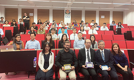 開幕式後緊接舉辦了第一期公開課,由聖若瑟大學社會科學學院院長滕思樂教授(Prof. Vitor Teixeira)和宗教學院院長麥侍文教授(Prof. Stephen Morgan)跟大家分享社會服務中的靈性與宗教,有學生和來自本澳社會服務機構的同工共50多人參加了本次公開課。
