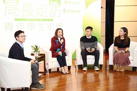 另外,在互動分享中,學生踴躍發問有關粵港澳大灣區發展、社會服務業前景以及從事社工等議題,黃艷梅局長詳細回答學生的提問,並分享自己多年來以助人自助的精神從事社會服務。她勉勵同學們努力學習,享受學習,畢業後積極參與社工專業資格認可,辦理好社工註冊,以專業的身份和熱誠的態度投身社會服務工作,並要持續進修提升個人的競爭力。此外,三院的社工學生代表均分享多年來的學習體驗及感受,詳述選擇社工專業的決定、學習過程的喜樂、遇到的困難與挫折,當中有喜有淚,最後如何在師長及同學的陪伴下,堅定努力完成學業。同學們真摰、坦率的分享,場面感人。黃艷梅局長期望同學們堅守理想,帶着社工專業的使命感,服務社會。