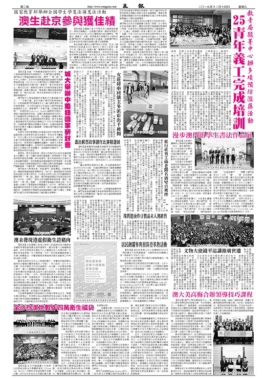 【特訊】市政署於盧廉若公園春草堂舉辦“2019‘漫步澳門街’第二十四屆青少年學生書法比賽作品展”,展出逾百幅得獎作品,展期至十二月二十九日,歡迎市民到場欣賞。