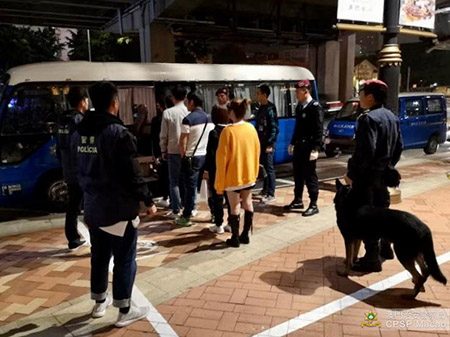 在警察總局統籌下,治安警察局持續「冬防行動2020」,確保本澳良好治安環境。於1月7日,澳門警務廳、海島警務廳、情報廳、特警隊聯同警犬組共派出53名人員於新口岸、離島市區及路氹城娛樂場周邊一帶截查可疑人士,以及交通廳分別在沙梨頭南街、路氹連貫公路及孫逸仙大馬路一帶進行查車行動,以預防及打擊各種不法行為。行動中一共截查211人(139男72女),其中39人(27男12女)需帶返警局作進一步跟進處理,經調查後發現共有34人涉及違法違規行為(33名涉嫌從事非法兌換貨幣及1名涉嫌從事賣淫活動),有關人士已被送交相關部門作跟進。