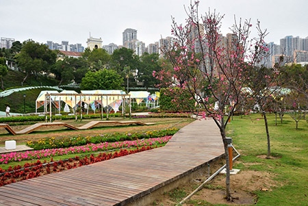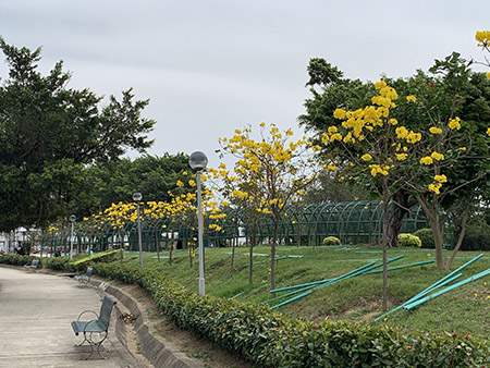 三月份,春暖花開,今年的櫻花更提早盛開;市政署分別於松山市政公園、二龍喉公園、龍環葡韻、盧廉若公園等多個公園種植共約四百株耐熱的櫻花品種,花色多樣,中國紅花色深紅至深桃紅色,廣州櫻花色為粉紅色,花瓣較中國紅開展,外觀更為奪目。預計花期將持續至三月下旬。另外,各區綠化帶的風鈴木、木棉和山林步行徑的銀葉金合歡、羊蹄甲等植物也相繼爭妍鬥麗,紅的黃的處處可見。