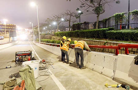 此外,嘉樂庇總督大橋亦正在安裝結構健康監測系統,預計可於下月投入運作。而友誼大橋目前正進行維修大樑及更換支承底座工程,工序均安排在橋底進行,施工時能保持橋面如常通車,對道路使用者的影響減至最低,工程正加緊進行中,預計於明年中完工。
