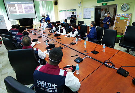 在菲首個工作日,專家組行程密集:在菲律賓衛生部接受中國駐菲大使黃溪連和菲衛生部長杜凱的共同會見,聽取菲衛生部關於菲應對新冠疫情的情況介紹;先後與菲兩所華人醫院進行交流;連夜開會,就菲疫情進行研判。
