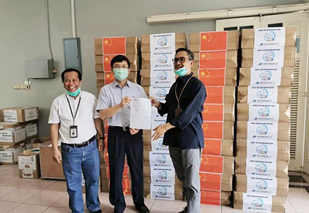 在位於蘇拉威西島的肯達裡市,中資企業印尼德龍鎳業有限公司攜手股東“中國一重”集團和廈門象嶼集團,向該公司所屬工業園區周邊3鎮5000戶居民和公司1.2萬名印尼籍員工捐贈大米、方便面等生活物資;首批捐贈的100萬隻醫用口罩、2萬隻N95口罩、10台呼吸機、7000套防護服和500支測溫槍已運抵印尼,第二批捐贈的4萬套檢測試劑盒、30萬副手套和一些口罩即將從中國啟運。