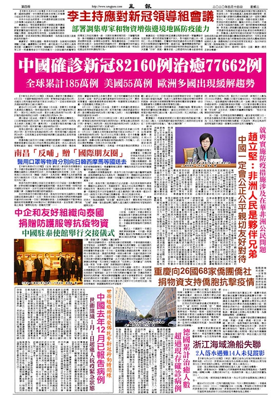 趙立堅指出,中國政府在疫情防控過程中,一貫高度重視保障外國在華人員的生命健康安全,對所有外國在華人員一視同仁,反對任何針對特定人群的差異性做法,對歧視性言行更是零容忍。疫情發生以來,廣東高度重視對包括非洲籍人士在內的所有外籍人士確診病例的救治工作,制定專門方案,作出妥善安置,成功救治了一些非洲籍危重病例,最大限度保障了他們的生命安全和身體健康。
