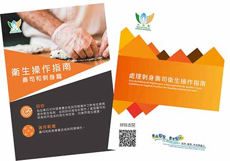 由於生鮮或即食冷凍食品屬高風險食品,若食材選購、食品製作、貯存不慎,容易出現食安問題。為此,市政署特別為食品業界編印了圖文並茂的《處理刺身壽司衛生操作指南》,介紹採購、處理、貯存、展示、運送生鮮食品時須注意的食安操作要點。提醒業界選購生鮮即食食材時,要留意食材級別,如刺身須選用「刺身」級食材;並須做好運送、貯存,以及展示等過程中的溫度控制,如冷藏食材須存放在攝氏五度以下,冷凍食材須存放在攝氏零下十八度或以下,已製成的壽司和刺身在運送和展示期間必須保存在攝氏五度以下;亦要遵從「先入先出」原則,優先使用食用限期較近的食材食品;生熟食品必須分開處理及貯存,避免交叉污染。