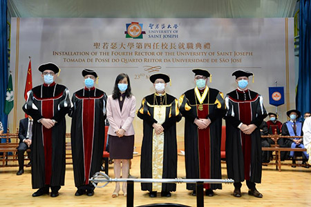 【特訊】聖若瑟大學(聖大)於5月23日(星期六)下午五時正假青洲校舍花地瑪百年顯現紀念堂舉辦第四任校長就職典禮。新任校長麥侍文教授是一位隸屬英國樸茨茅斯教區的威爾士籍執事,自2018年9月起擔任該校的教授、期後兼任宗教研究學院院長及圖書館發展總監。典禮由聖若瑟大學校監暨澳門教區李斌生主教主持,出席嘉賓包括行政長官代表社會文化司司長歐陽瑜、中央人民政府駐澳門特別行政區聯絡辦公室教育與青年工作部副部長洪波、中華人民共和國外交部駐澳門特別行政區特派員公署外交公署新聞和公共外交部主任鄭新友、高等教育局局長蘇朝暉、教育暨青年局副局長梁慧琪、各政府部門、學校、善長仁翁、機構、聖若瑟大學學生會及校友會代表等。