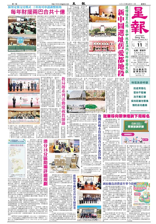 教青局今年繼續與郵電局合作發行教師節紀念郵品,並舉辦教師節海報及漫畫作品創作活動,作為慶祝教師節的重點活動。九月十日上午在教青局仲尼堂舉行「二○二○教師節紀念郵品發行儀式暨教師節海報及漫畫作品展開幕禮」。社會文化司司長歐陽瑜、教青局局長老柏生、郵電局局長劉惠明、教青局副局長梁慧琪及龔志明、社會文化司司長辦公室顧問郭曉明、澳門中華教育會會長陳虹、澳門天主教學校聯會會長周伯輝、澳門公職教育協會監事長許淑貞,以及非高等教育委員會委員、教學人員專業委員會委員及學校代表等出席了發行儀式及開幕禮。