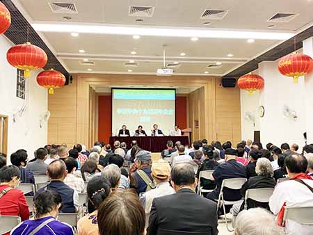 活動在僑總禮堂舉行,近二百名僑總理監事和會員與會,分享會長劉藝良,理事長王彬成,監事長劉雅煌學習會議精神的體會。