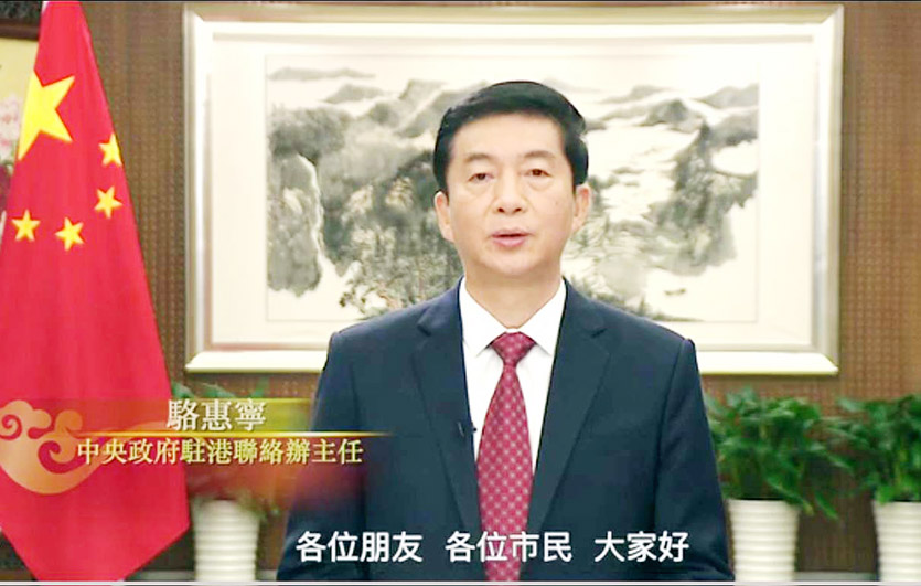 港中聯辦主任駱惠寧在新春「雲酒會」致辭時表示