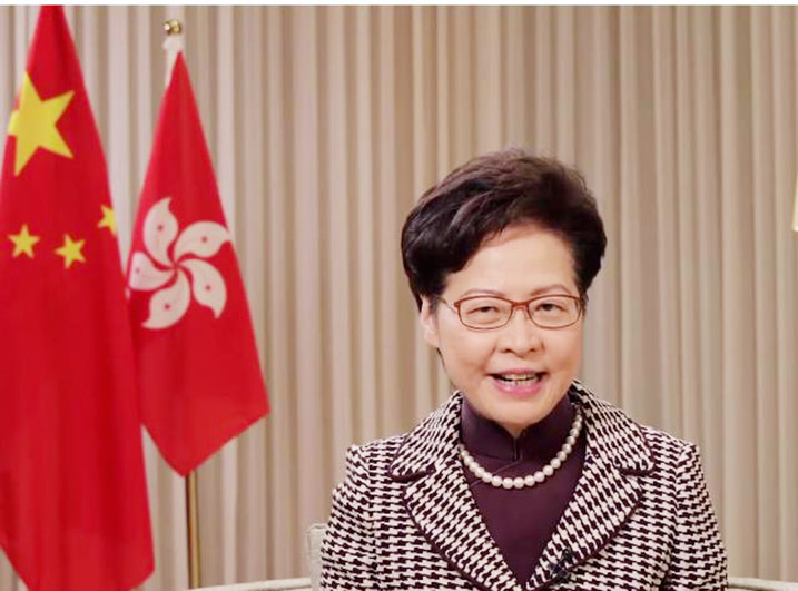 林鄭月娥說,「我相信在克服疫情後,通過中央的大力支持和粵港澳大灣區的無限機遇,香港的經濟會欣欣向榮,民生得以改善。」