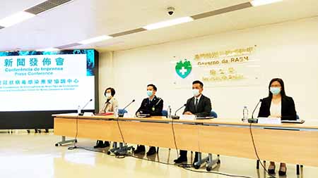 新型冠狀病毒感染應變協調中心(下稱應變協調中心)於昨日(二十二日)舉行例行記者會,仁伯爵綜合醫院醫務主任羅奕龍、治安警察局公共關係處處長李德輝、旅遊局公共關係處處長劉鳳池、疾病預防控制中心傳染病防制暨疾病監測部協調員梁亦好出席。