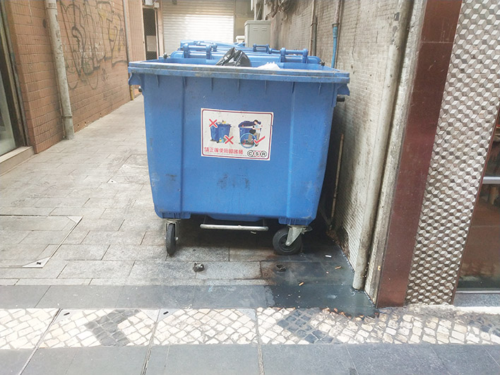 梁鴻細表示,天神巷是本澳著名的商業步行街之一,歷史文化底蘊深,疫情前每天都吸引不少遊客慕名而來,非常熱鬧,然而擺放在天神巷連丁里的垃圾桶常見污水漏出、腐爛食物發出異味,或有時垃圾沒及時清理而外露,影響商業步行街的衛生、營商環境。在實地亦發現,這些垃圾桶擺放在大廈公眾通道上,亦違反《防火安全規章》關於阻礙逃生方面的規定。