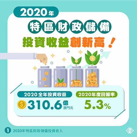 【特訊】在2020年,澳門特區財政儲備錄得310.6億(澳門元,下同)投資收益,年度回報率為5.3%,以金額計為歷年最高。過去五年,財儲的平均年回報率為3.1%,相較同期的平均年度通貨膨脹率為2.0%。