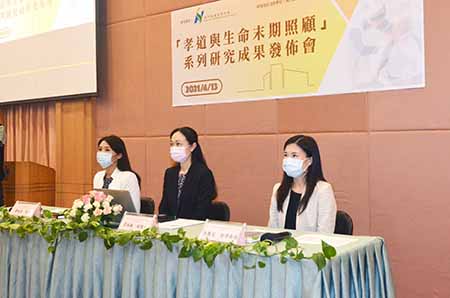 「孝道與生命末期照顧」系列研究成果發佈會於本月13日下午三時假演講廳舉行,公佈「澳門華人『好死看法』及生命末期照顧中『盡孝表現』調查研究」及「澳門民眾對紓緩治療和生命末期照顧的認知和態度研究」的成果。第一個研究針對澳門18至74歲華裔常住人口進行,收到706份有效問卷。結果發現,八成五受訪者同意或非常同意「好死」是需要對死亡有準備;超過九成人認為「盡孝」是應該要陪伴和滿足父母的需求,超過五成認為不應隱瞞病情或只報喜不報憂;但當面對父母臨終時的選擇,卻少於七成人願意主動與父母談論死亡,反映自身追求的「好死」狀態與面對父母臨終時的「盡孝」表現存在差異。