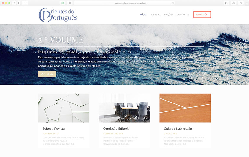 【特訊】由澳門理工學院與葡萄牙波爾圖大學合作創辦的葡語國際學術期刊《葡萄牙語的東方之路》(Orientes do Português)第二期現已正式上線(http://orientes-do-portugues.ipm.edu.mo),歡迎廣大中葡專家學者、高校師生及感興趣人士免費獲取瀏覽。本期收錄範圍廣泛,除收到來自葡萄牙波爾圖大學、巴西里約熱內盧天主教大學及北京外國語大學、中山大學、澳門理工學院等葡語國家和中國知名高校學者投稿外,還收到英國牛津大學等世界頂尖學府學者供稿,表明本期刊學術影響力不斷擴大,也說明了廣大中葡學者之研究成果在國際範圍內的影響力與日俱增。