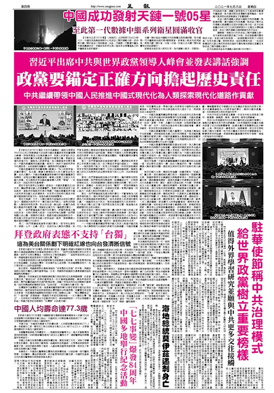 【中新社北京7月7日電】(記者 郭超凱 黃鈺欽)中國共產黨與世界政黨領導人峰會6日晚以視頻連線方式舉行。其間,多名駐華使節在北京出席峰會,並稱中國的治理模式給世界政黨樹立了重要榜樣,值得外界學習和研究。