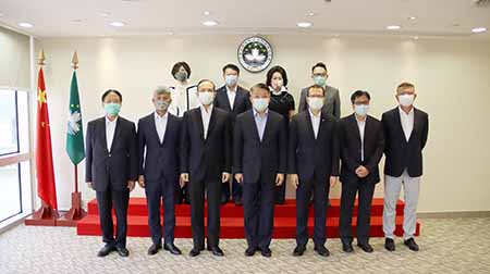 【特訊】澳門歸僑總會新任會長劉雅煌、理事長陳曉平、監事長王彬成率領新一屆理監事代表日前拜訪經濟財政司,介紹理監事成員及會務發展工作,獲李偉農司長熱情接待。李偉農勉勵新一屆僑總繼往開來,團結務實,為澳門經濟適度多元及持續繁榮貢獻僑界力量。