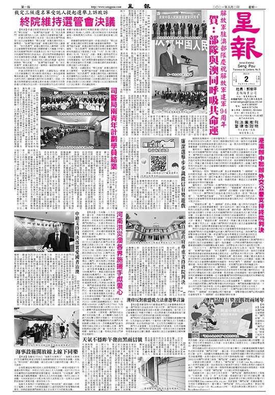 當前報章2021年08月02日