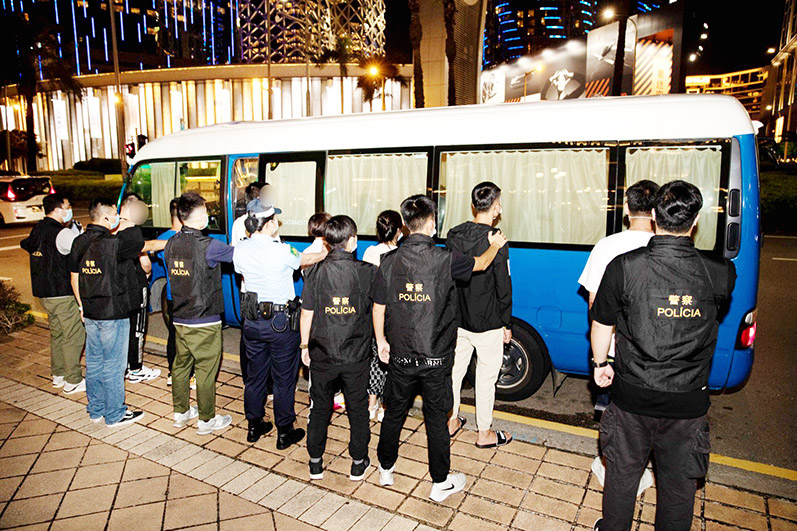 【特訊】在警察總局統籌下,治安警察局於8月16日至8月17日凌晨進行「雷霆行動2021」,以維護本澳社區良好治安環境。治安警察局澳門警務廳、海島警務廳、情報廳及交通廳合共派出49名人員,分別前往澳門及氹仔各公園和休憩區,以及路氹城金光大道一帶,加強截查可疑人士,以及打撃金光大道一帶進行的非法兌換及“扒仔”活動。另外,亦在本澳各區不定點進行查車行動,以預防及打擊各種不法行為和犯罪活動。