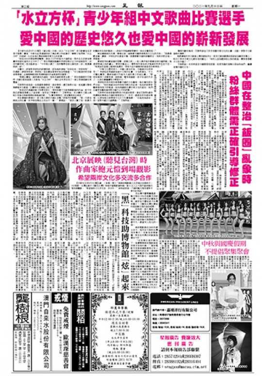 「水立方杯」青少年組中文歌曲比賽選手 愛中國的歷史悠久也愛中國的嶄新發展
