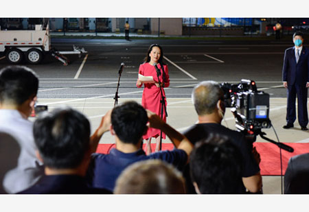 在黨中央堅強領導下,經中國政府不懈努力和堅決鬥爭,美國司法部日前與孟晚舟簽署延緩起訴協議,美方向加拿大撤回引渡申請。當地時間9月24日,孟晚舟在不認罪、不支付罰金的情況下離開加拿大,踏上返回祖國的征程。