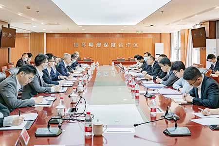 經科局局長戴建業、副局長陳子慧、陳漢生及多名主管一行與深合區城市規劃和建設局代理局長張國基等人員會面,會上聽取了該局就深合區的城市規劃最新情況的介紹,雙方並就《總體方案》中關於「建設中葡國際貿易中心」等工作規劃進行交流。
