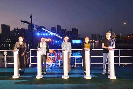 同日下午,澳娛綜合支持於內港媽閣碼頭舉行的「hush! 2021」亮點節目「海岸搖滾」音樂會。配合是次音樂會概念,澳娛綜合應澳門文化局邀請,特別提供了旗下躉船「娛樂一號」(前身為挖泥船)作為演出舞台,讓樂隊成員置身在內港水域的海面上,配合船身的螢幕及燈光佈置,為觀眾呈獻一場別開生面的音樂表演,推動本澳流行音樂文化的同時,亦藉此介紹澳娛綜合長期肩負的疏浚航道工作。此外,澳娛綜合亦在會場外設置展位及攤位遊戲,讓市民大眾加深對疏浚航道工作的認識,以及其對澳門經濟和民生的重要意義。
