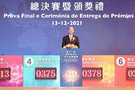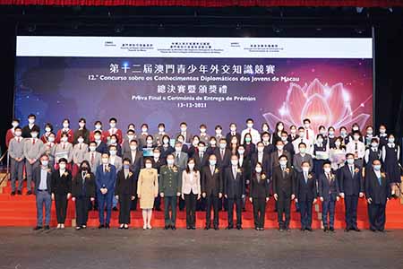 【特訊】由澳門特別行政區政府與中華人民共和國外交部駐澳門特別行政區特派員公署主辦、教育及青年發展局承辦的第十二屆澳門青少年外交知識競賽總決賽暨頒獎禮在十二月十三日成功舉行。澳門青少年外交知識競賽綜合考驗參賽學生對國家外交思想、中國特色大國外交、涉澳外交、外交史、外交常識、時政熱點等的掌握和運用,得到特區社會各界廣泛支持。