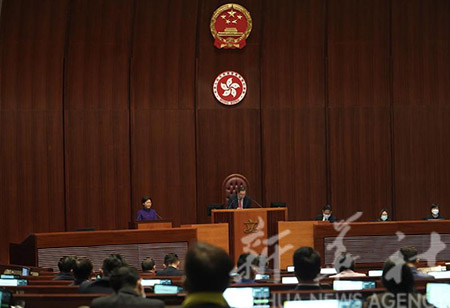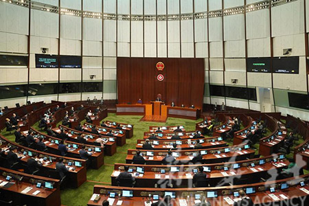 香港特區第七屆立法會首次會議,會場佈置煥然一新。國徽和區徽,一大一小,一上一下,掛在主席位上方,正對著會議廳大門。一眼望去,莊嚴大氣,熠熠生輝。