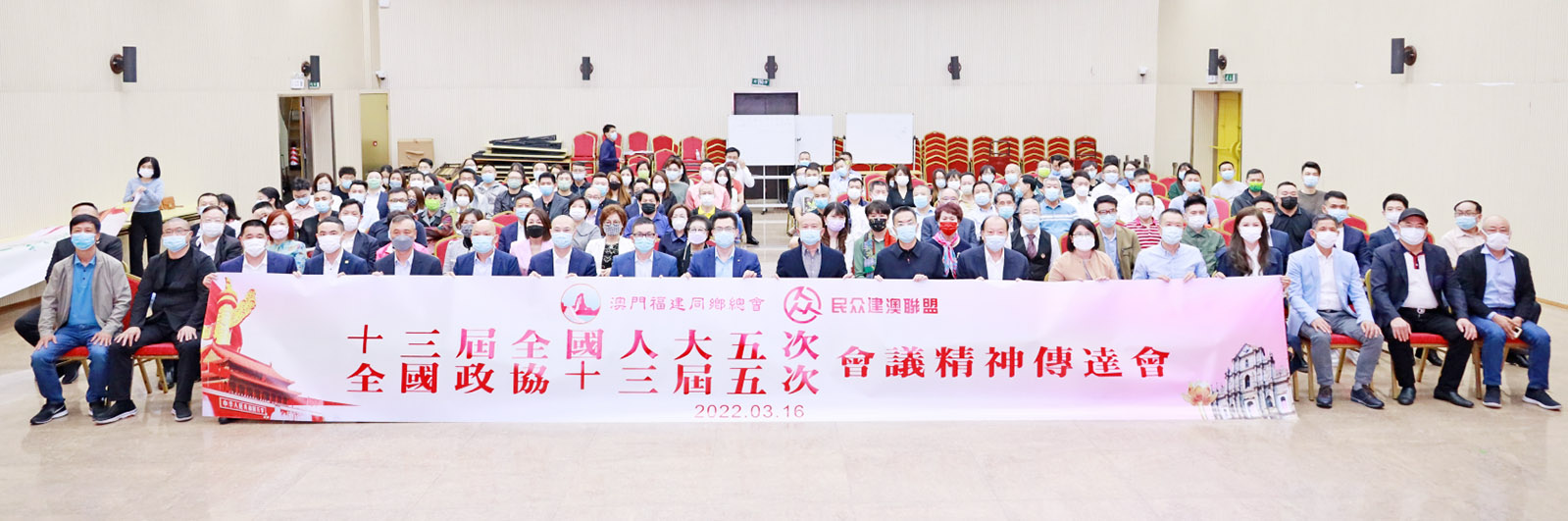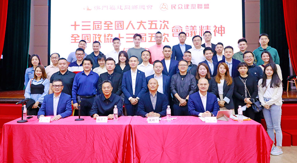 【特訊】3月16日下午,澳門福建同鄉總會、民眾建澳聯盟聯合舉辦全國兩會精神傳達會。中聯辦協調部處長級助理郭曉輝應邀出席,澳區全國政協委員陳明金、張宗真,澳區全國人大代表施家倫,分別傳達全國兩會精神。澳門福建同鄉總會理事長黃天松主持會議。澳門福建同鄉總會、民眾建澳聯盟主要負責人及理監事等200多人與會。