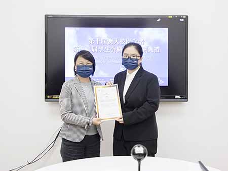 【特訊】澳門大學新一屆校園記者和學生公關大使舉行線上就職典禮,期間並頒發“十大傑出校園記者”及“十大傑出學生公關大使”獎狀。澳大副校長莫啓明勉勵學生把握大學提供的實踐機會,拓展潛能。