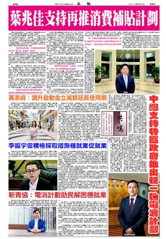 經濟財政司司長李偉農日前在立法會上表示,政府決定加推新一輪電子消費計劃,目的是“顧民生,穩內需”。工聯總會理事長、議員李振宇表示肯定,指消息的公佈有助增強市場和居民抗疫防疫信心。但強調就業是最大民生,冀政府在做好民生支援措施的同時,亦須積極採取措施穩就業、促就業,從根本上保障和改善民生。