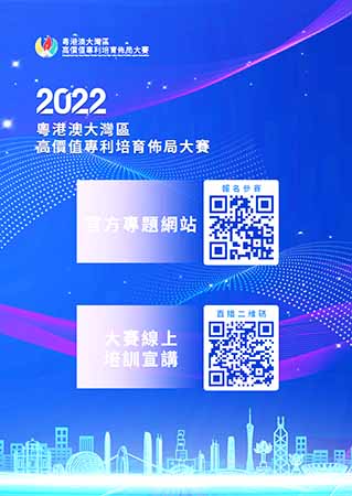 【特訊】為推動粵港澳大灣區高質量發展,積極打造更完善的知識産權創造、保護和運用生態,廣東省知識產權局、香港特別行政區政府知識產權署、澳門特別行政區政府經濟及科技發展局和佛山市人民政府於2022年4月至10月聯合主辦“2022年粵港澳大灣區高價值專利培育佈局大賽”。大賽現已接受報名,報名截止日期為6月20日。為了讓公眾清晰瞭解賽事詳情,經濟及科技發展局將於5月25日舉辦大賽網上培訓宣講活動。