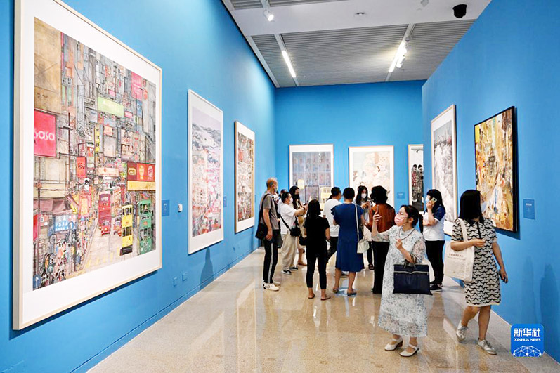【特訊】新華社北京6月24日電(記者陳舒)6月24日,“筆墨丹青繪灣區——慶祝香港回歸祖國25周年美術作品展”在中國國家博物館開幕。展覽以“筆墨丹青繪灣區 流光溢彩畫未來”為主題,共展出116件(組)內地及港澳美術家的美術作品,涵蓋“中央援港 同心抗疫”“香港、澳門回歸”“建黨百年在港澳”“香港國安法正式頒佈”“港珠澳大橋建成通車”“內地奧運健兒訪港”和“香港故宮文化博物館開館”等豐富內容,記錄描繪粵港澳大灣區建設的重要成就,著重展現香港回歸祖國以來,在“一國兩制”方針指引下,在政治、經濟、文化、社會和民生等方面取得的發展進步。