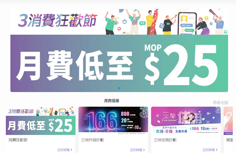 詳情請瀏覽︰ https://3mall.three.com.mo/ 。