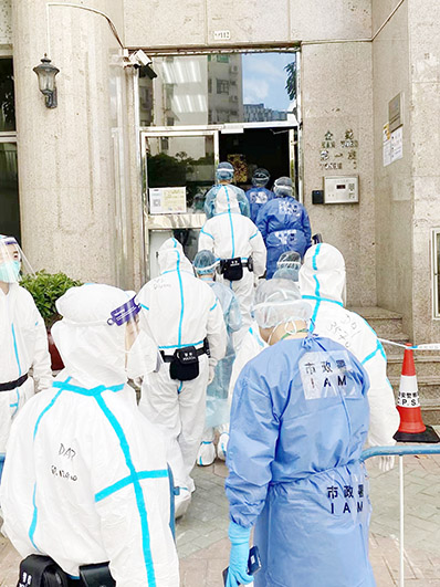 【特訊】市政署表示,維生小組昨日(21日)早對新增紅碼區金利達花園金苑開展住戶排查及派送食物包等物資,並已對金利達花園金苑的公共空間進行大型清潔及消毒工作,以及在防控區內搭建臨時核酸採樣站及前線協調站。