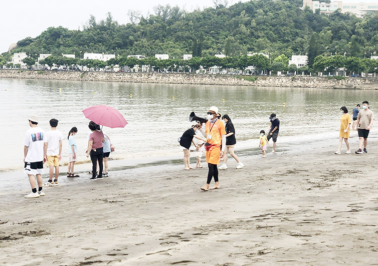 局方提醒到海灘活動的市民須遵守衛生局最新的防疫指引,在游泳及進行水上活動期間可摘除口罩,但須保持社交距離。在完成游泳或水上活動後,應及時佩戴外科口罩或以上標準的口罩,且儘量減少摘除口罩活動的時間。