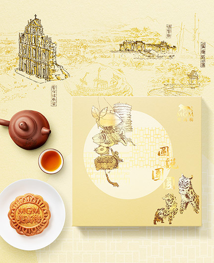 《圖說鏡海—鏡海歸帆圖》專題片以圖畫講歷史,描繪出澳門從小漁村蛻變到現在邁向世界旅遊休閒中心500年的發展軌跡,訴説屬於澳門人的家國情懷故事,弘揚愛國愛澳的精神。今年美高梅的「圖說團圓」月餅禮盒以專題片中陸曦的線條繪畫為設計,齊集主教山、媽閣廟、大三巴牌坊等澳門著名歷史城區名勝的精美圖作,創造出澳門人的專屬禮盒,冀喚起大家對「家」的歸屬感,並在佳節之中與親朋好友一同「圖說團圓」。