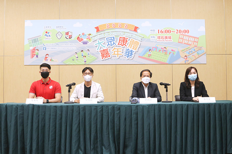 【特訊】由體育局主辦,超卓體育會及澳門賈立賢體育會協辦的「2022大眾康體嘉年華」,將於9月3日(周六)及4日(周日)下午4時至晚上8時在塔石廣場舉行,主辦單位希望透過舉辦大眾康體嘉年華活動,提高市民對體育運動的興趣,推動不同年齡層市民積極參與體育鍛煉,提升身體素質。