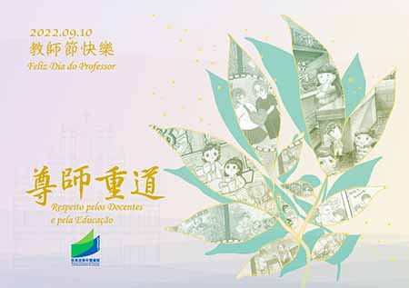 今年,教青局遵循環保節約原則,繼續向全澳教學人員贈送簡約的教師節紀念郵品,並於9月10日在“教菁社區”和“動感教菁”Facebook專頁以短片方式介紹2022教師節紀念郵品和各項系列活動。此外,亦設立了教師節專題網頁(https://portal.dsedj.gov.mo/webdsejspace/site/tday/)和製作了一系列慶祝教師節活動的短片,讓市民向教師們送上祝福和鼓勵,並弘揚尊師重道的精神。同時,9月5日至10月20日向全澳中小學校進行“2022教師節海報及漫畫作品展──作品徵集”活動,讓學生發揮創意,展現感謝老師之情。